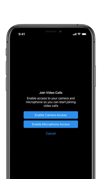 - Tap the ‘Enable’ buttons to grant both camera and microphone access so you can be seen and heard.