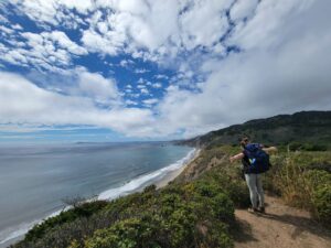 Mochilero en la costa nacional de Point Reyes